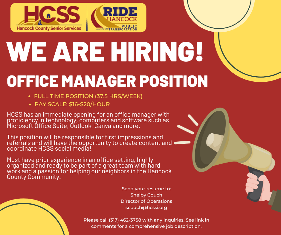 SENIOR SOCIAL – HCSS is hosting Senior Socials Tuesdays and Thursdays. The first and fourth Tuesdays at 10 a.m. in Greenfield (1870 Fields Blvd) and Thursdays at 10 a.m. at the Hancock Health Wellness Center in McCordsville in partnership with Hancock Health. HCSS hosts the McCordsville social every 1st and 4th Thursday. Each session is different. There may be demonstrations or interesting presenters or fun and games. Every session includes fellowship with fellow seniors.